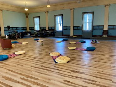 Floor cushions are available for use in the Grand Room or Yoga Studio